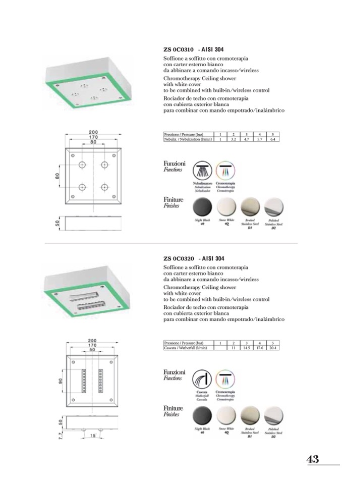 Soffione a soffitto con cromoterapia