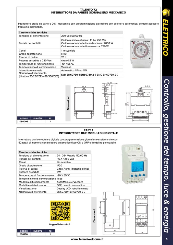 Interruttore orario da parte o DIN meccanico con programmazione giornaliera con selettore automatico/ sempre acceso e