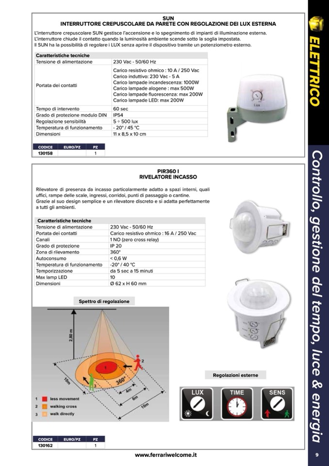 L’interruttore crepuscolare SUN gestisce l’accensione e lo spegnimento di impianti di illuminazione esterna.