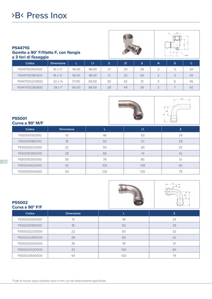 *Tutte le misure sopra riportate sono in mm, se non diversamente specificato.