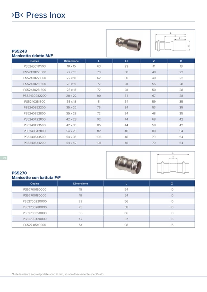 *Tutte le misure sopra riportate sono in mm, se non diversamente specificato.