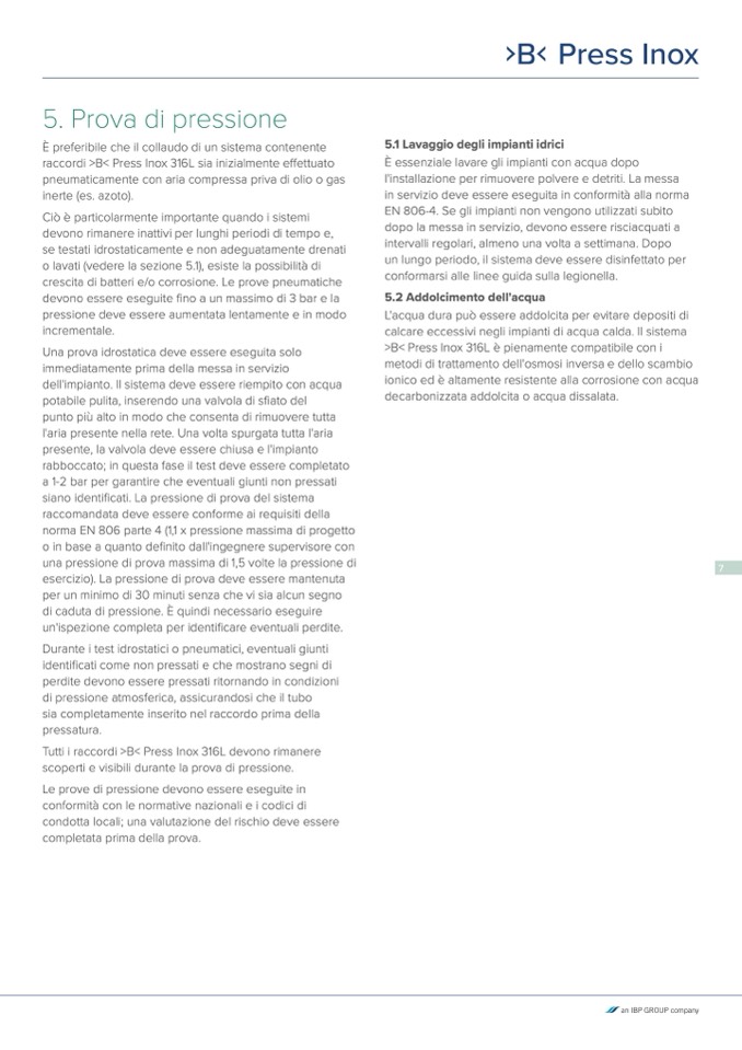 norma EN 806 parte 4 (1,1 x pressione massima di progetto