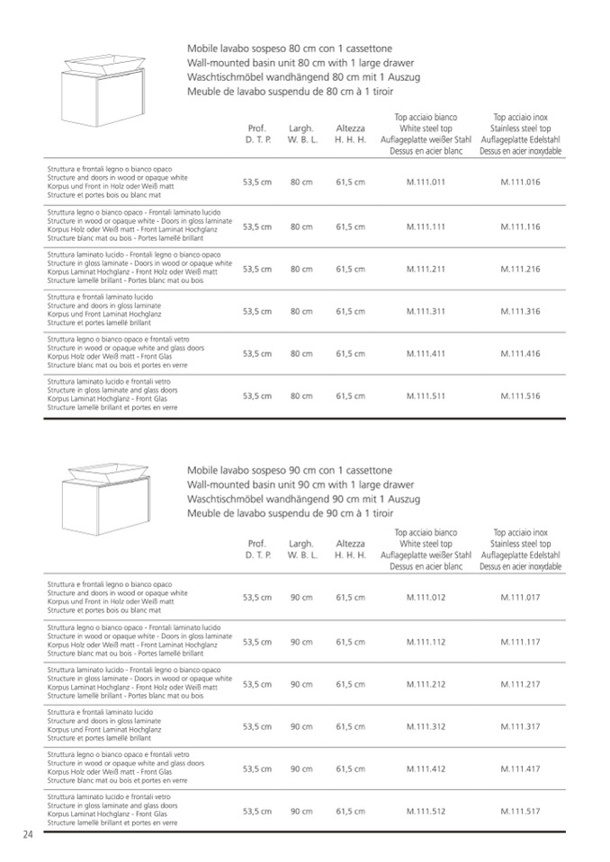 Mobile lavabo sospeso 80 cm con 1 cassettone