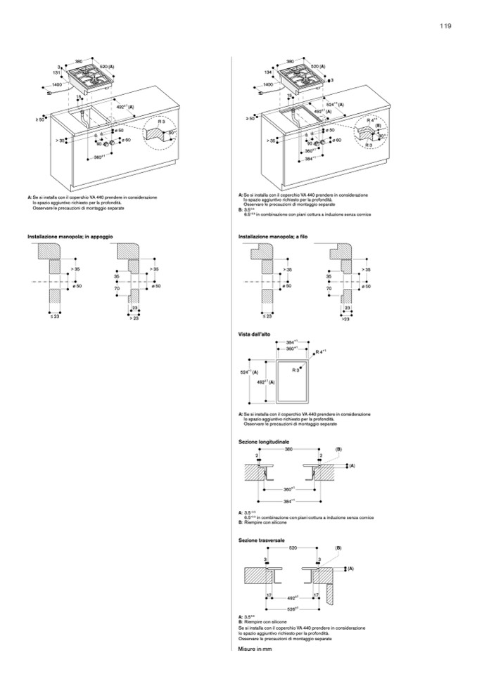 Se si installa con il coperchio VA 440 prendere in considerazione
