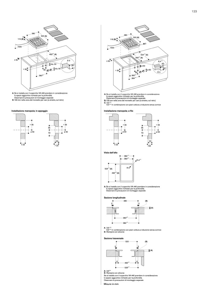 Se si installa con il coperchio VA 440 prendere in considerazione