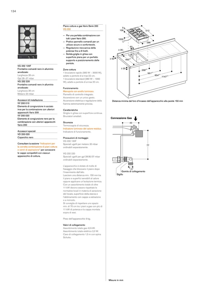 Assorbimento totale gas 4,9 kW.