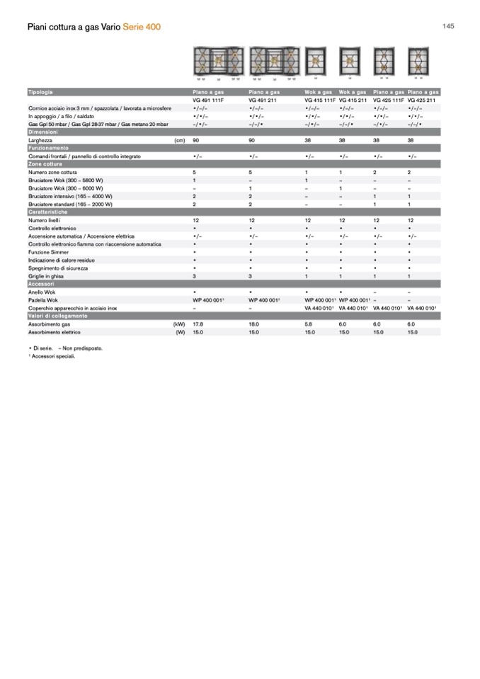 Gas Gpl 50 mbar / Gas Gpl 28-37 mbar / Gas metano 20 mbar