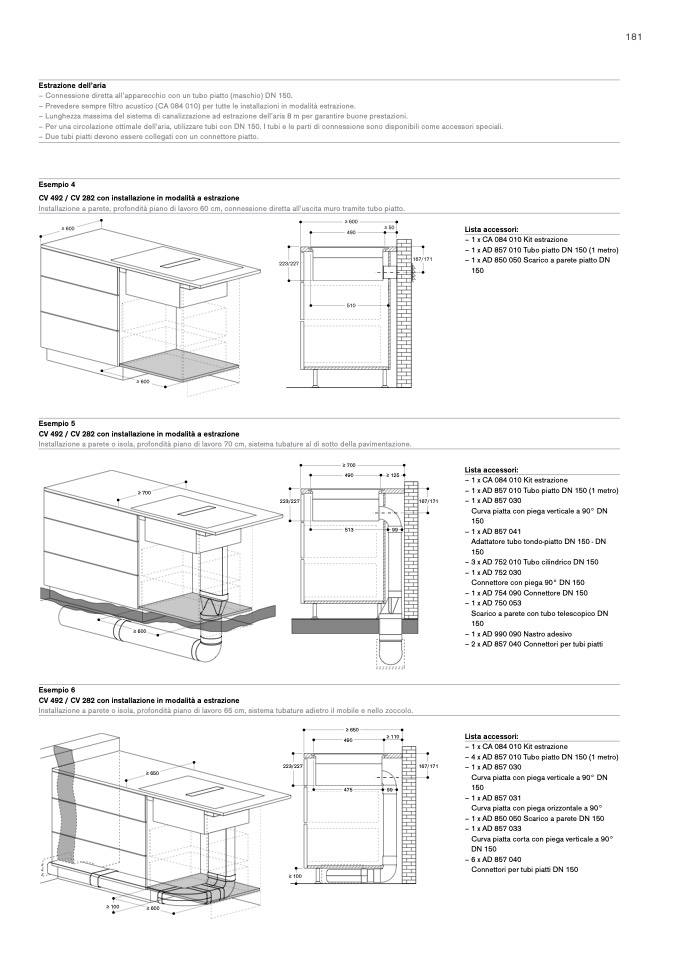 – Per una circolazione ottimale dell’aria, utilizzare tubi con DN 150. I tubi e le parti di connessione sono disponibili come accessori speciali.