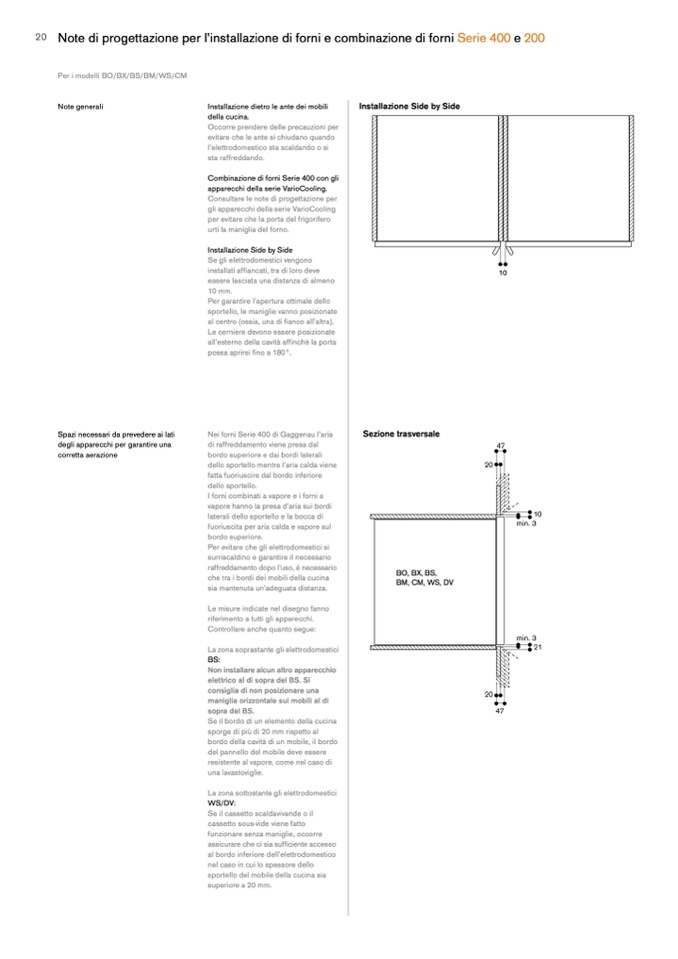Per i modelli BO/BX/BS/BM/WS/CM