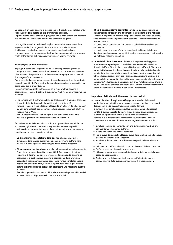 – Il tipo di cappa/sistema aspirante: ogni tipologia di aspirazione ha