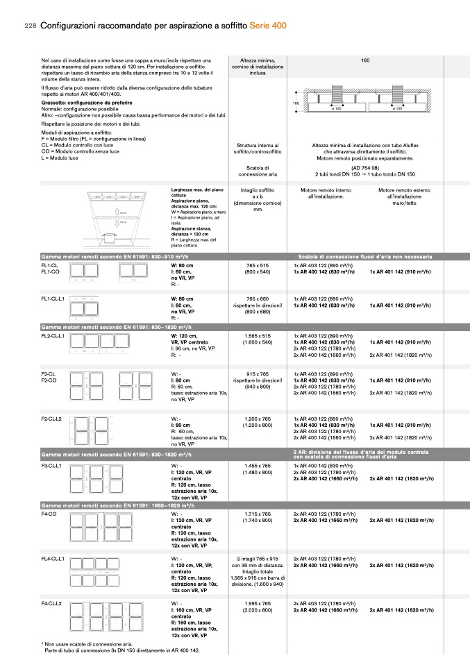 distanza massima dal piano cottura di 120 cm. Per installazione a soffitto