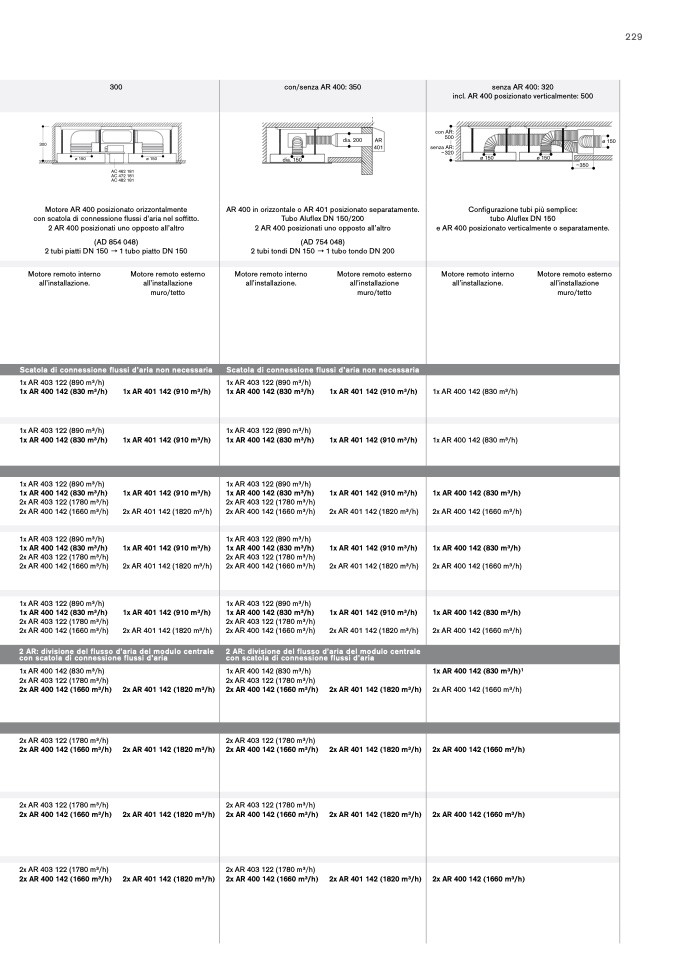 AR 400 in orizzontale o AR 401 posizionato separatamente.