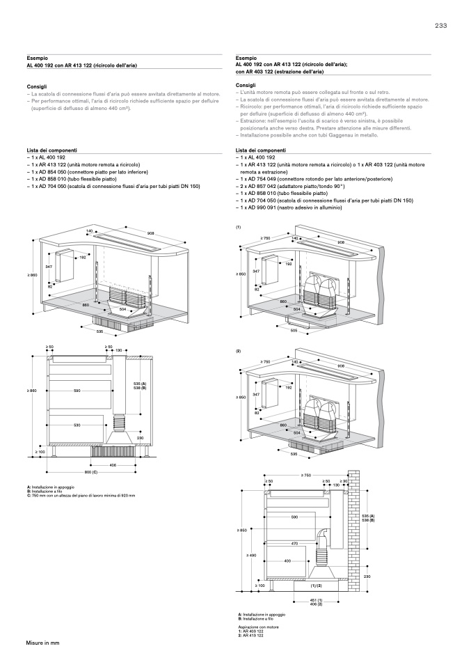 AL 400 192 con AR 413 122 (ricircolo dell’aria)