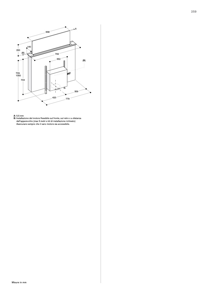 B: Installazione del motore flessibile sul fronte, sul retro o a distanza