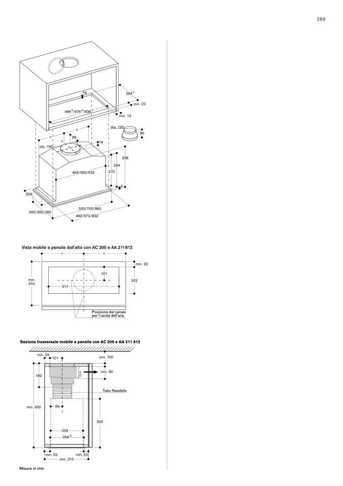 Sezione trasversale mobile a pensile con AC 200 e AA 211 812