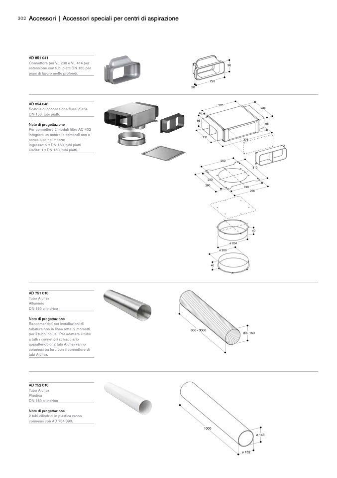 con tubo piatto DN 150 per piani di lavoro molto profondi