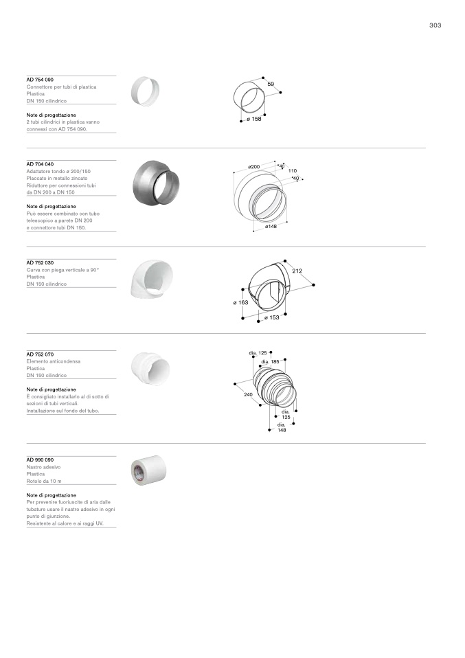 e connettore tubi DN 150.
