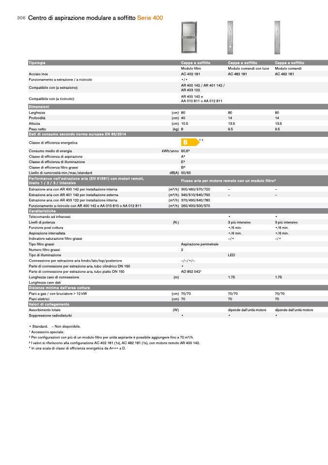 3 I valori si riferiscono alla configurazione AC 402 181 (1x), AC 482 181 (1x), con motore remoto
