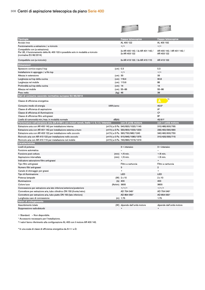 2 I valori fanno riferimento alla configurazione AL 400 con il motore AR 400 142.