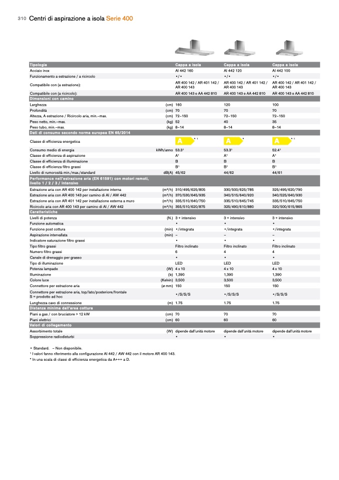 1 I valori fanno riferimento alla configurazione AI 442 / AW 442 con il motore AR 400 143.