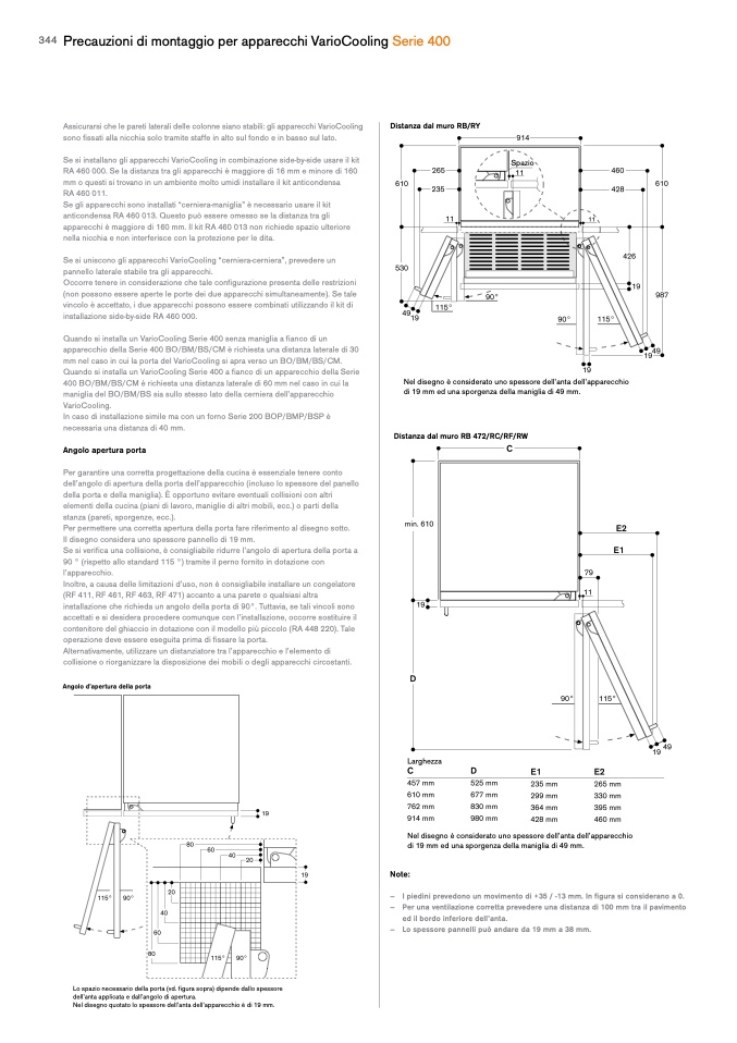 mm nel caso in cui la porta del VarioCooling si apra verso un BO/BM/BS/CM.