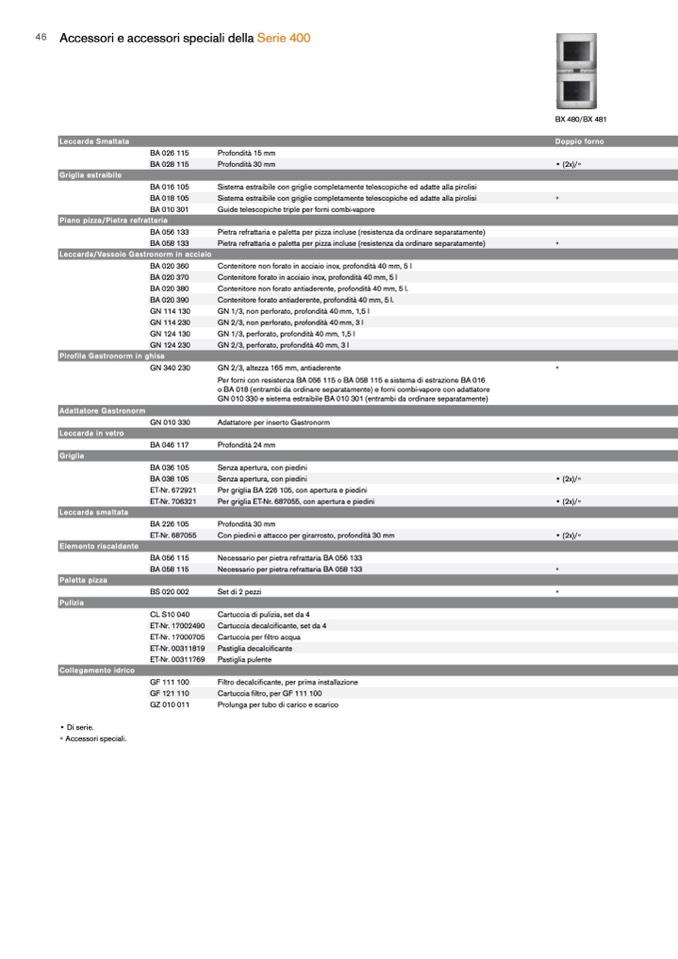 Per forni con resistenza BA 056 115 o BA 058 115 e sistema di estrazione BA 016