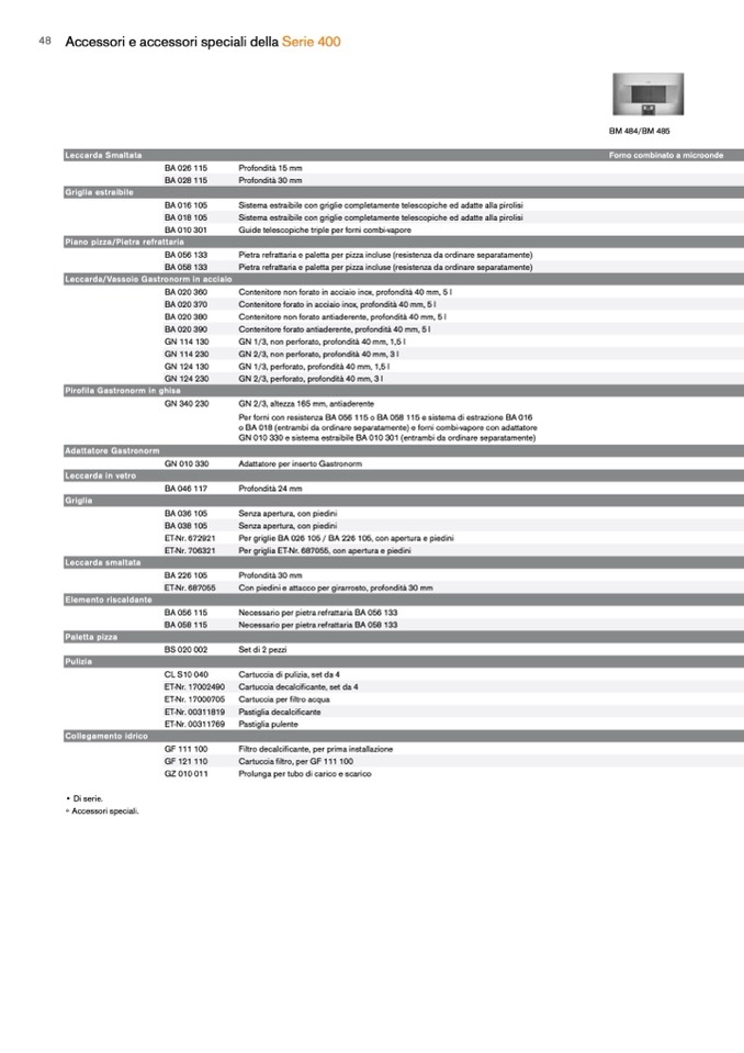 o BA 018 (entrambi da ordinare separatamente) e forni combi-vapore con adattatore