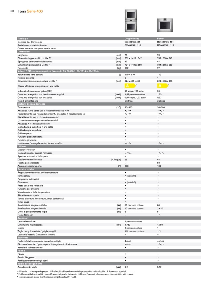 Volumi / Efficienza energetica (secondo EN 60350-1, 65/2014 e 66/2014)