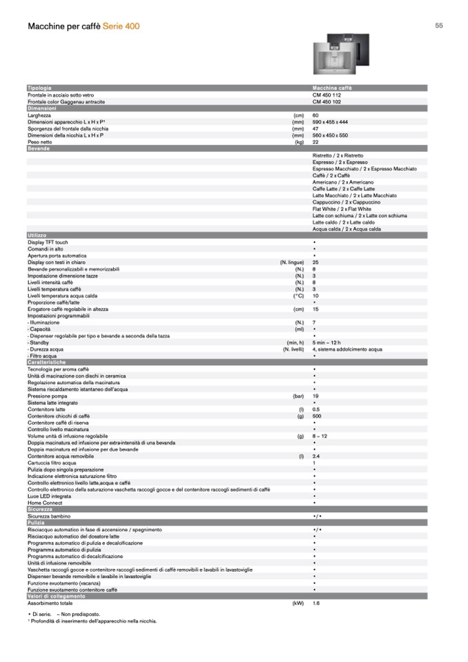 - Dispenser regolabile per tipo e bevande a seconda della tazza