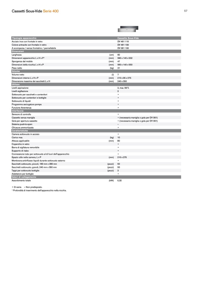 • (necessaria maniglia o gola per DV 061)