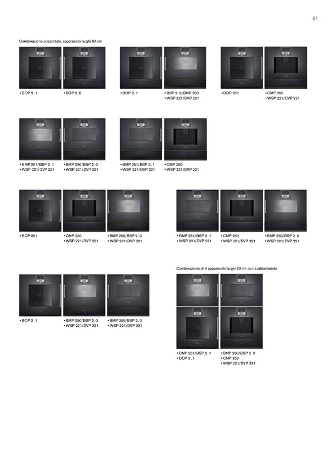Combinazione di 4 apparecchi larghi 60 cm con scaldavivande