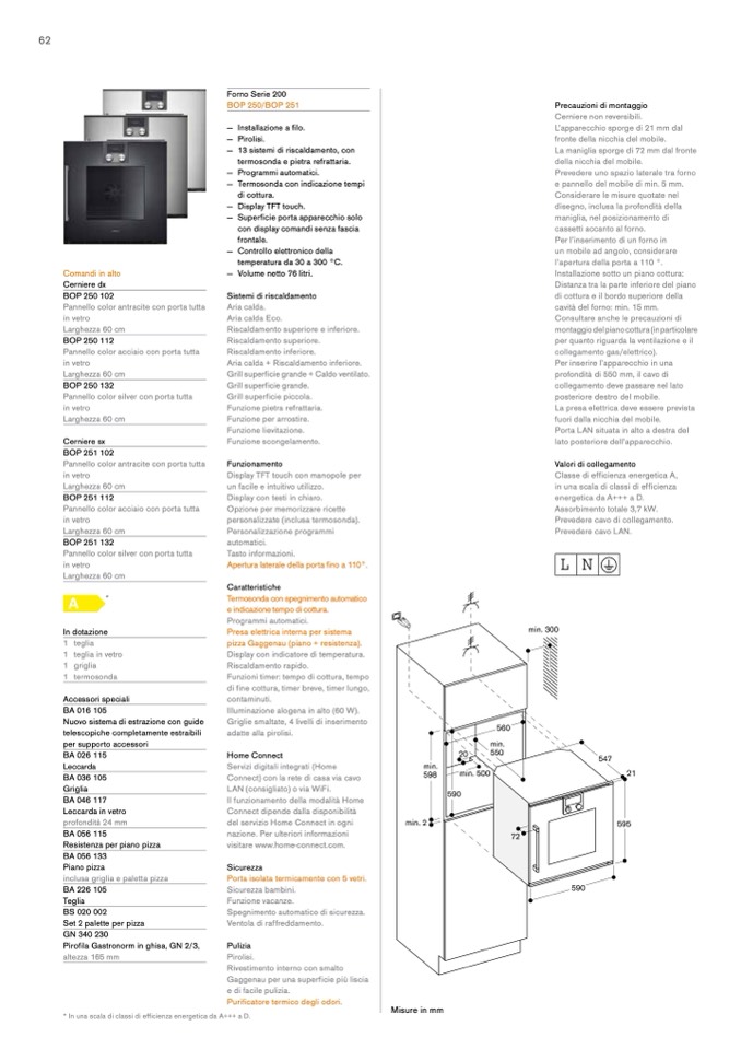 cavità del forno: min. 15 mm.