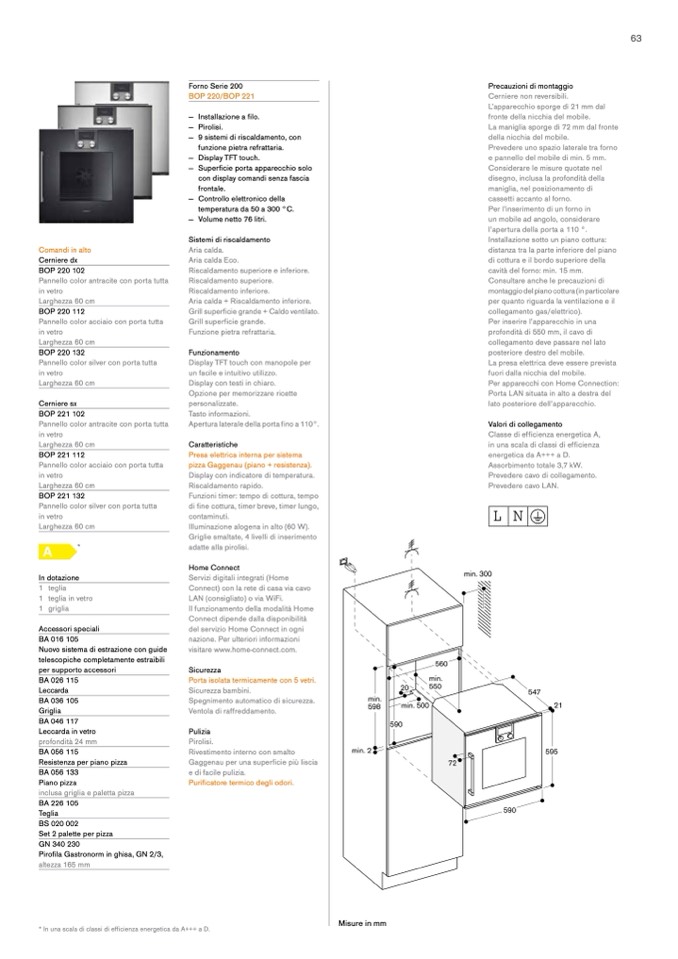 cavità del forno: min. 15 mm.