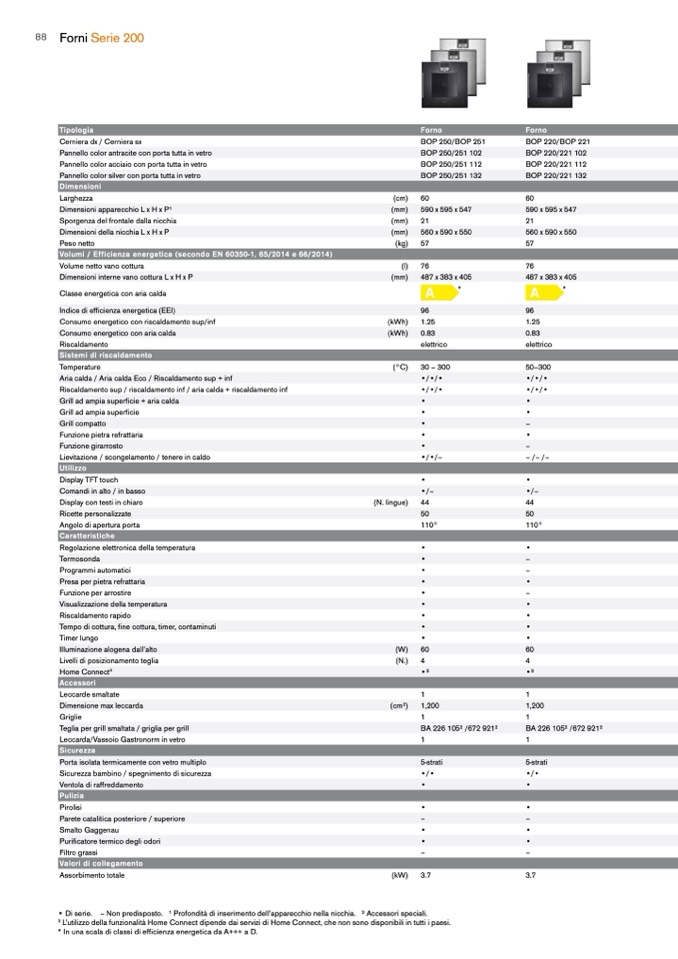 Volumi / Efficienza energetica (secondo EN 60350-1, 65/2014 e 66/2014)