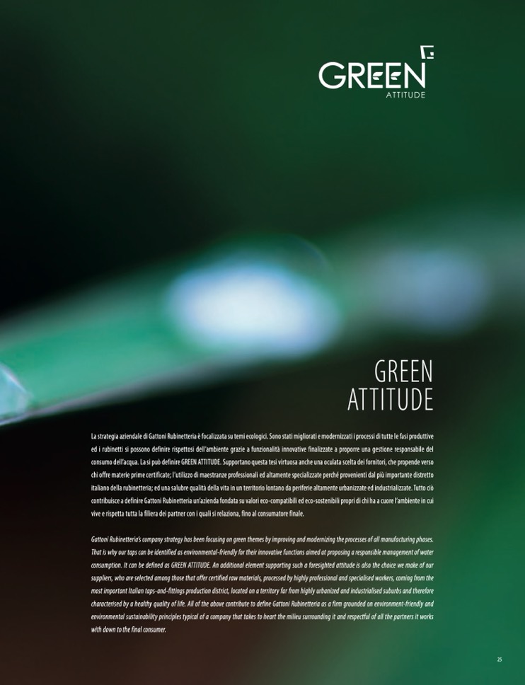 contribuisce a definire Gattoni Rubinetteria un’azienda fondata su valori eco-compatibili ed eco-sostenibili propri di chi ha a cuore l’ambiente in cui