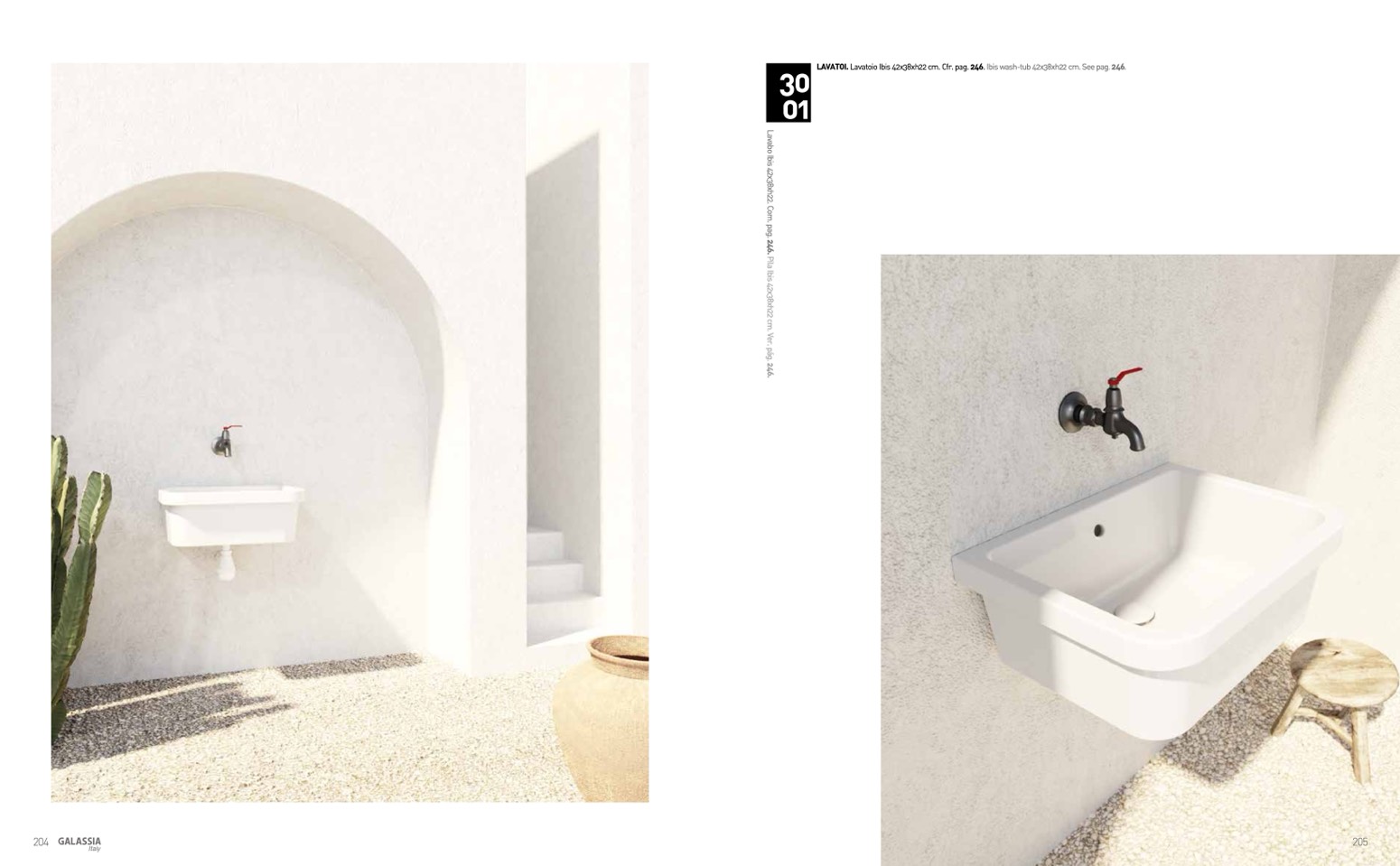 LAVATOI. Lavatoio Ibis 42x38xh22 cm. Cfr. pag. 246. Ibis wash-tub 42x38xh22 cm. See pag. 246.