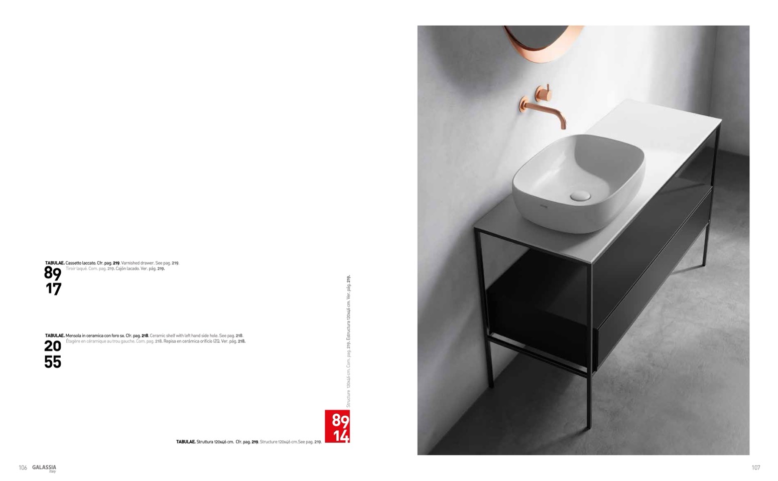 TABULAE. Mensola in ceramica con foro sx. Cfr. pag. 218. Ceramic shelf with left hand side hole. See pag. 218.