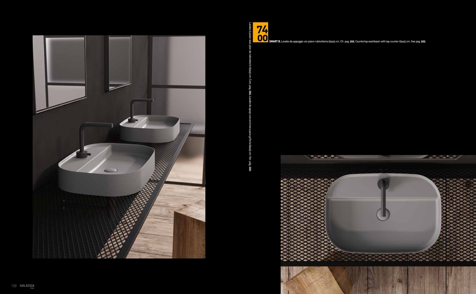 SMART B. Lavabo da appoggio con piano rubinetteria 65x45 cm. Cfr. pag. 222. Countertop washbasin with tap counter 65x45 cm. See pag. 222.