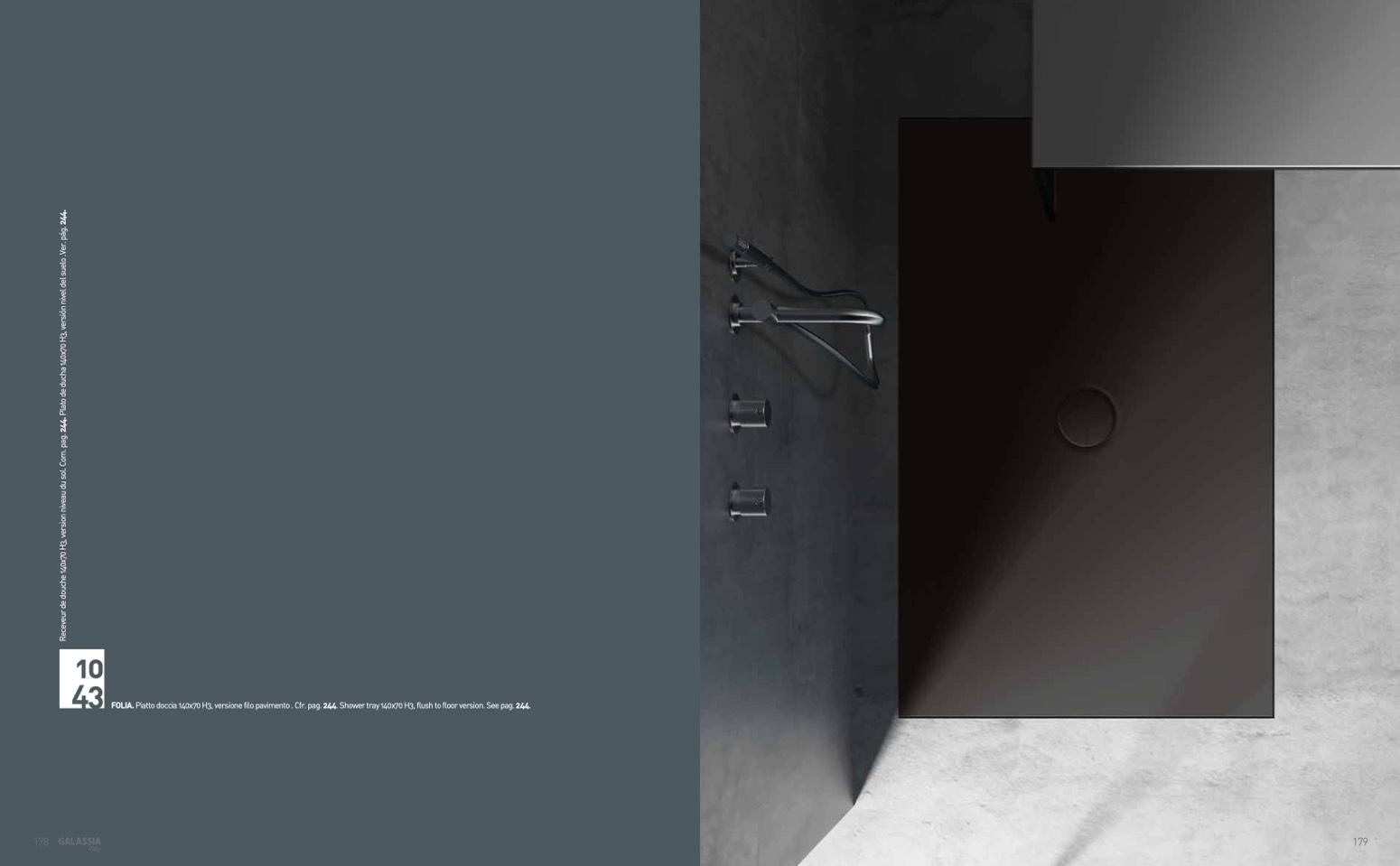 FOLIA. Piatto doccia 140x70 H3, versione filo pavimento . Cfr. pag. 244. Shower tray 140x70 H3, flush to floor version. See pag. 244.