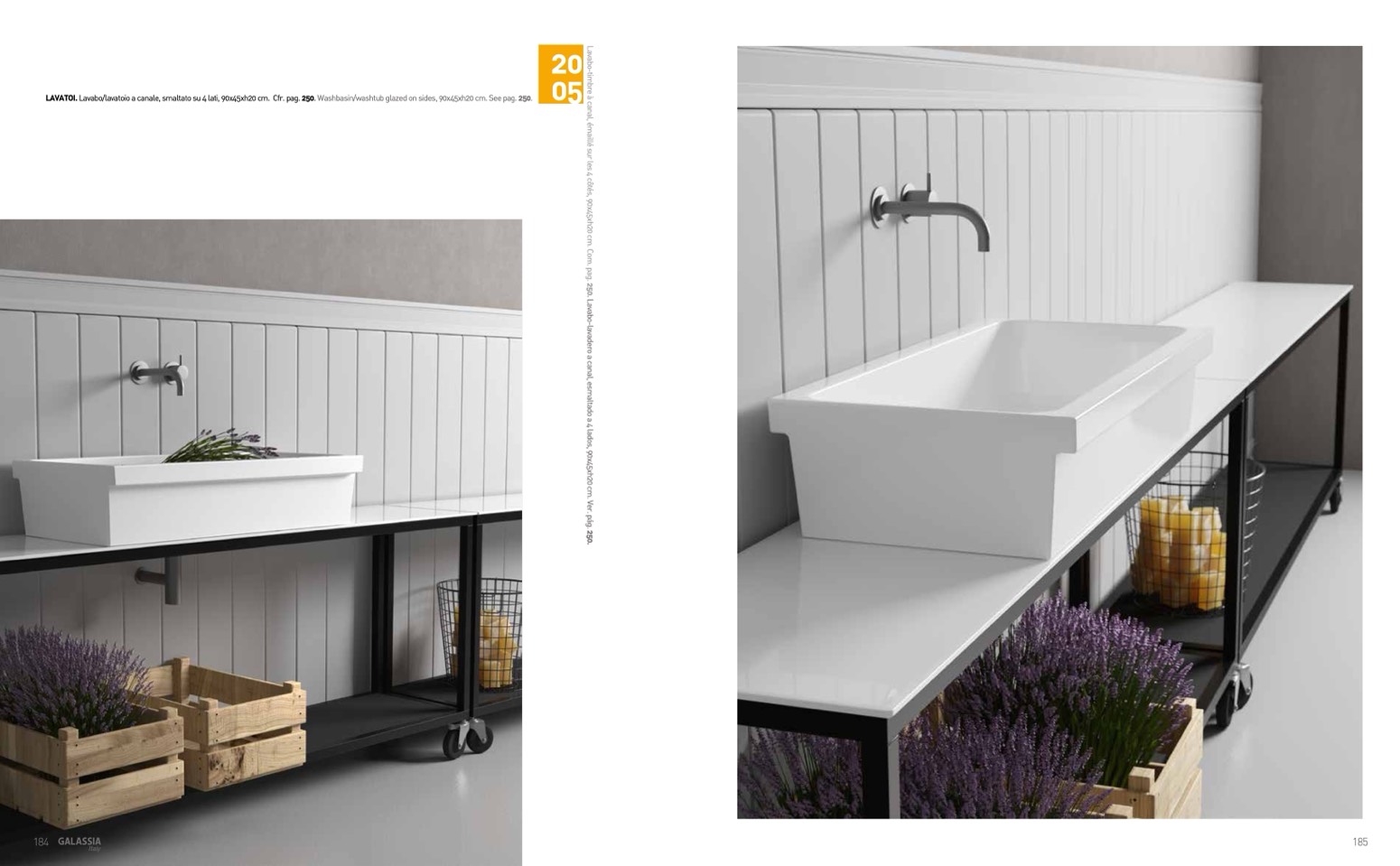 LAVATOI.Lavabo/lavatoioacanale,smaltatosu4lati,90x45xh20cm. Cfr.pag.250.Washbasin/washtubglazedonsides,90x45xh20cm.Seepag.250.