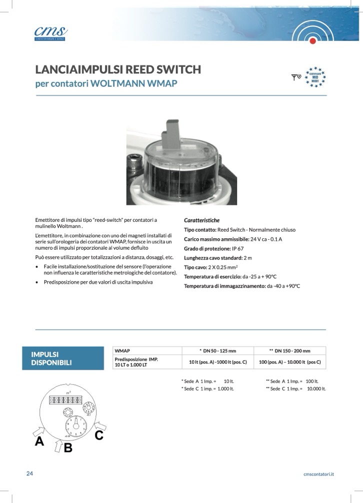 Emettitore di impulsi tipo “reed-switch” per contatori a