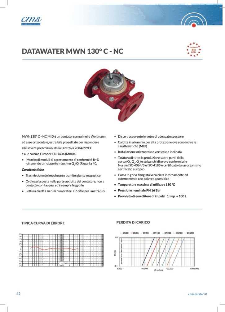 MWN130° C - NC MID è un contatore a mulinello Woltmann