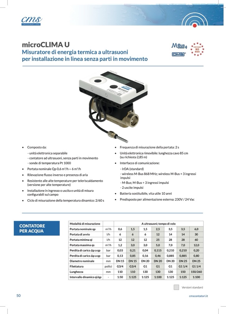 - contatore ad ultrasuoni, senza parti in movimento