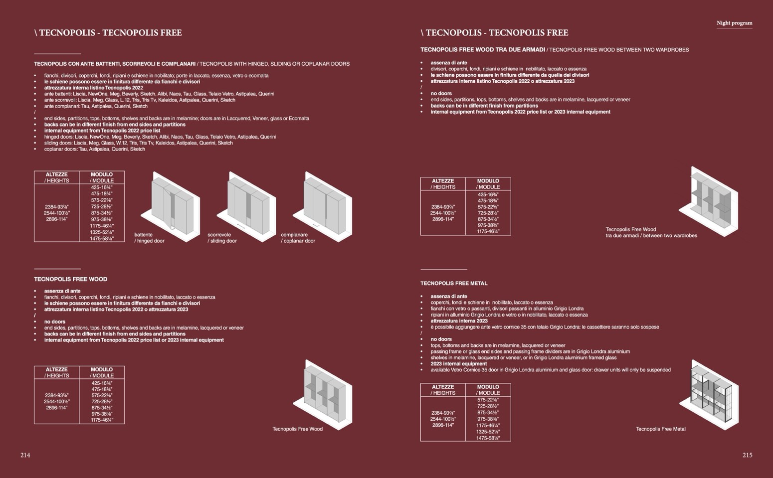TECNOPOLIS CON ANTE BATTENTI, SCORREVOLI E COMPLANARI / TECNOPOLIS WITH HINGED, SLIDING OR COPLANAR DOORS