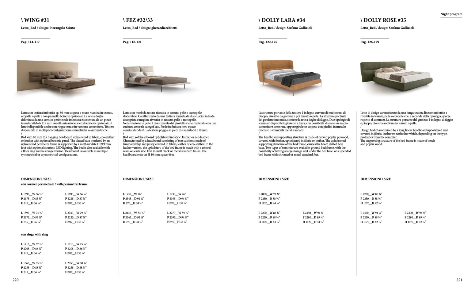 letto è disponibile anche con ring a terra e in versione contenitore. Testiera
