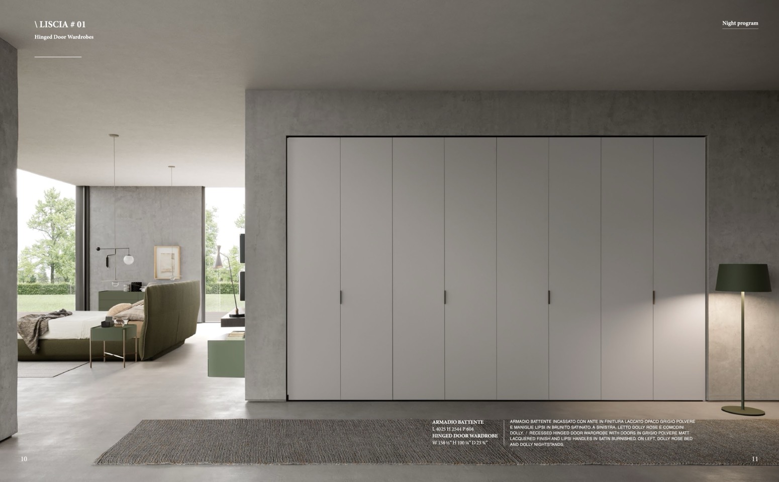 DOLLY. / RECESSED HINGED DOOR WARDROBE WITH DOORS IN GRIGIO POLVERE MATT