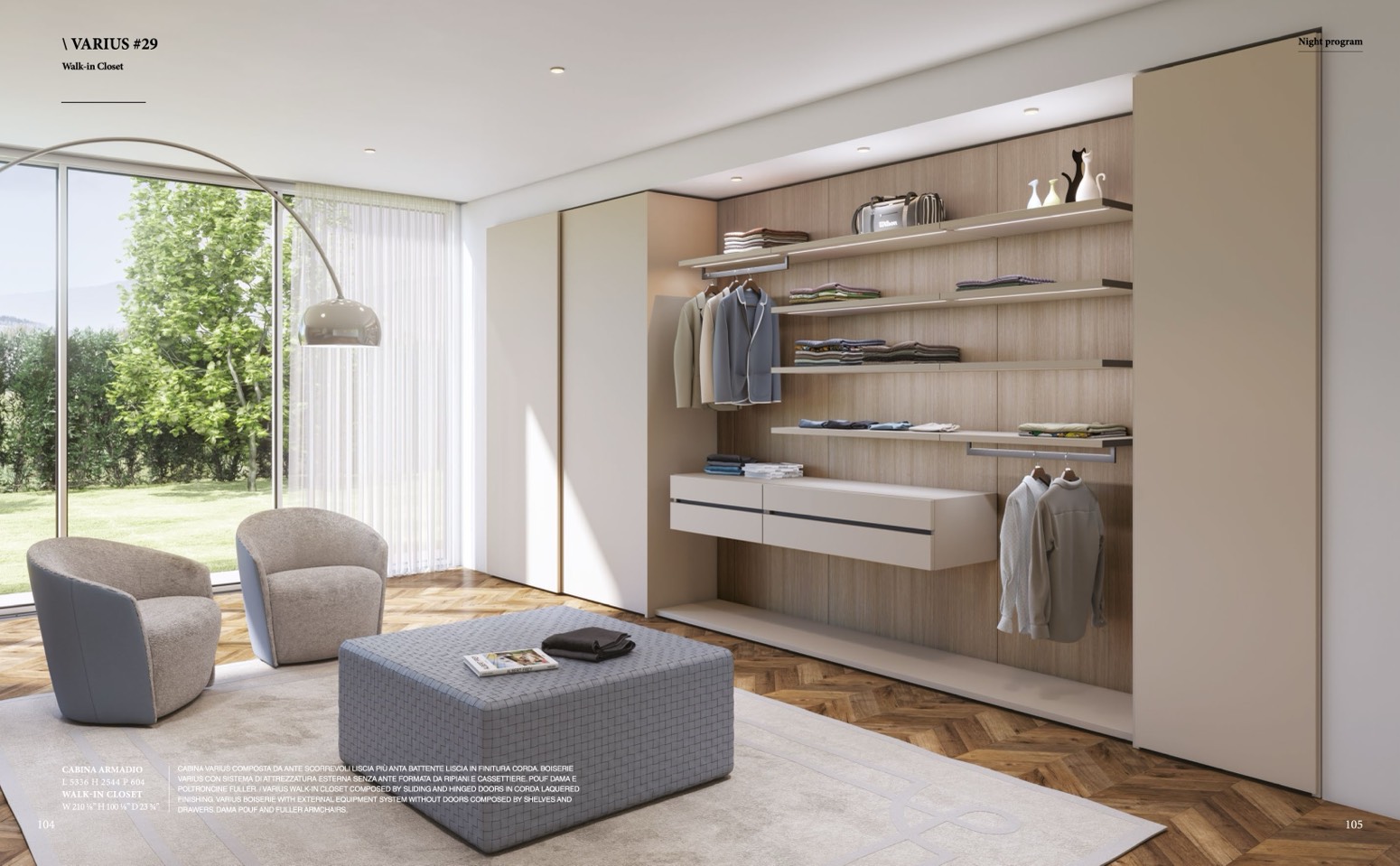 POLTRONCINE FULLER. / VARIUS WALK-IN CLOSET COMPOSED BY SLIDING AND HINGED DOORS IN CORDA LAQUERED