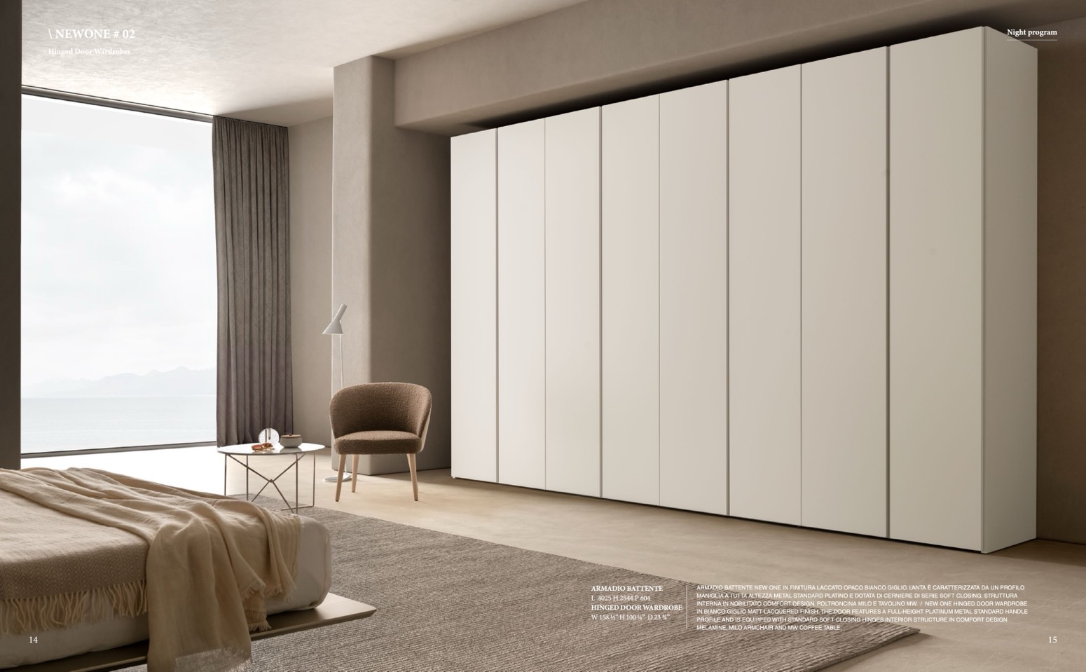 ARMADIO BATTENTE NEW ONE IN FINITURA LACCATO OPACO BIANCO GIGLIO. L’ANTA È CARATTERIZZATA DA UN PROFILO
