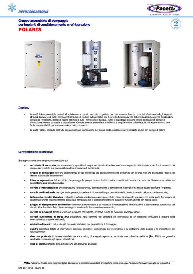 Le unità Polaris, essendo costruite con componenti idonei anche per acqua calda, possono essere utilizzate anche con pompe di calore