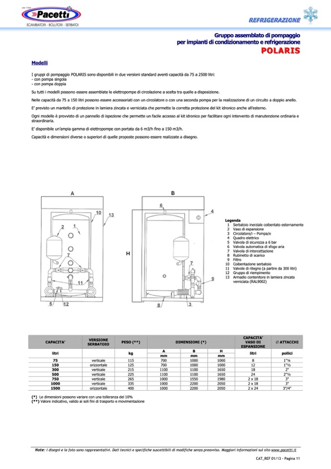 I gruppi di pompaggio POLARIS sono disponibili in due versioni standard aventi capacità da 75 a 2500 litri: